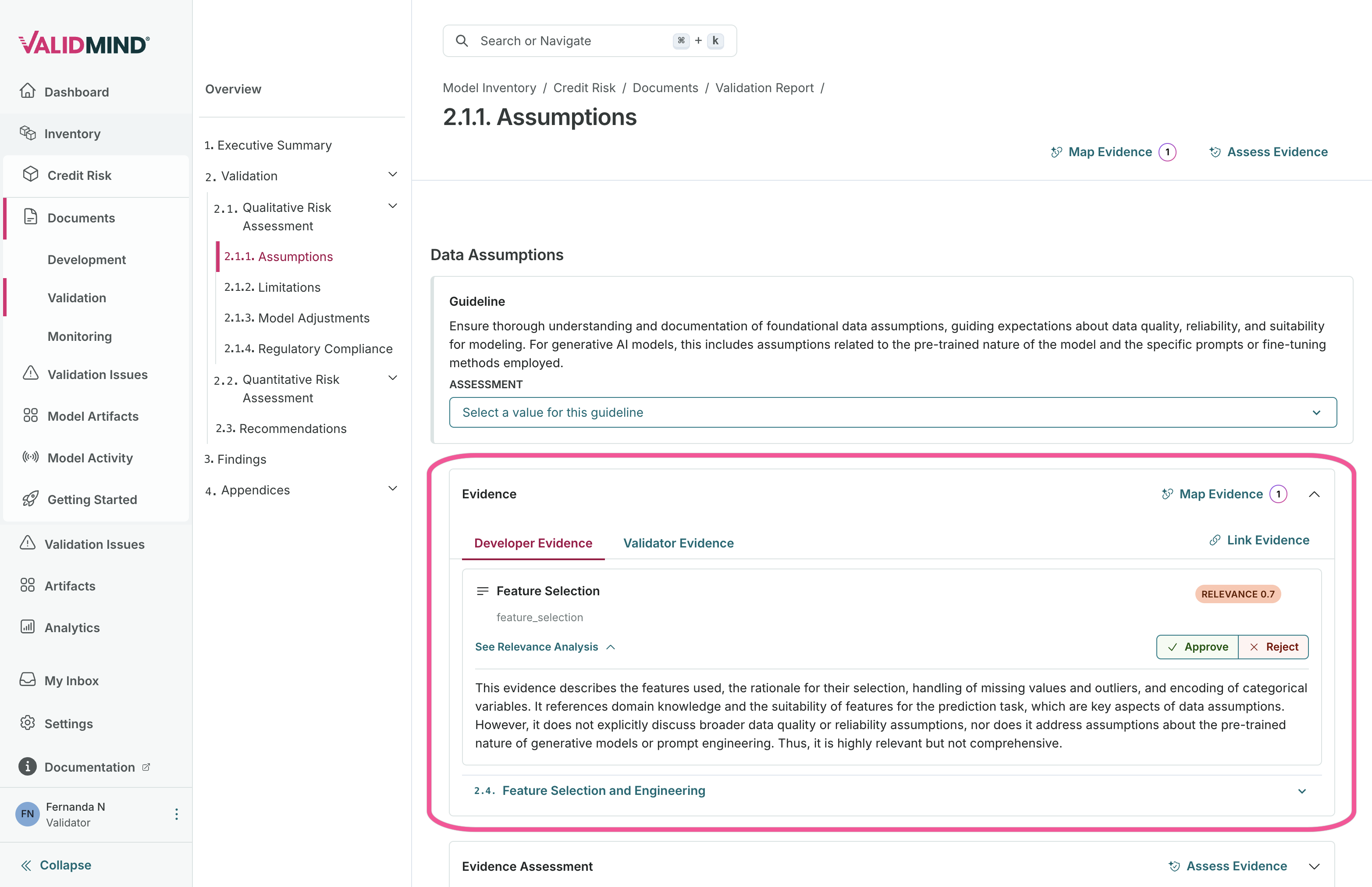 Analyze your model documentation and validation report to automatically map evidence: