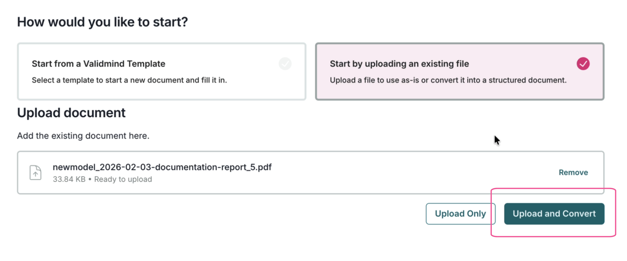 Upload existing PDF documents and automatically translate them into ValidMind documentation format.
