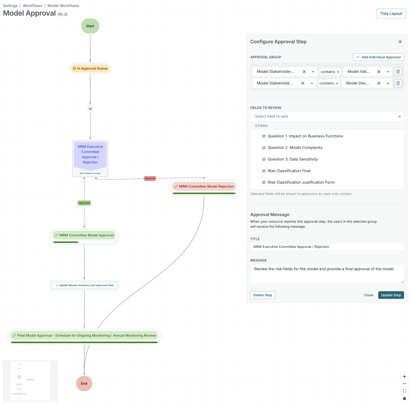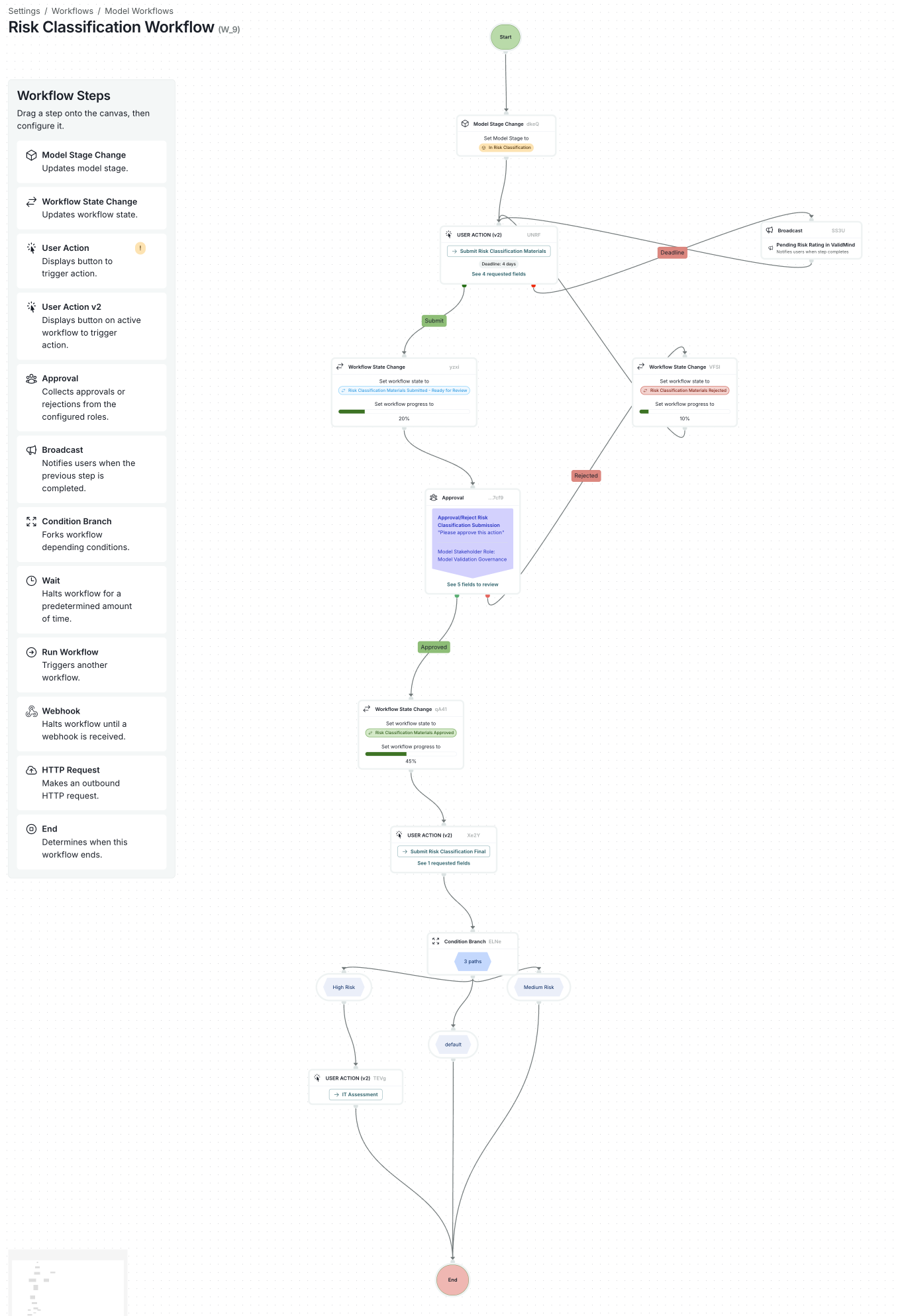 Approval workflows ensure AI systems receive appropriate review before deployment. They implement: